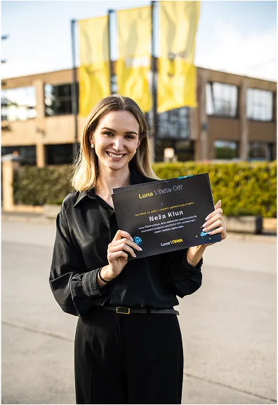 Vsi kandidati, ki bodo uspešno zaključili program*, prejmejo tudi uraden certifikat za opravljen trening Luna \TAKE OFF. Tega lahko ponosno priložijo življenjepisu, ko bodo iskali službo – pri nas ali kje drugje.